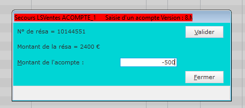 Une fois la validation du nouvel acompte validée, le montant de l’acompte affiché par LSVentes s’ajuste sur la bonne valeur.