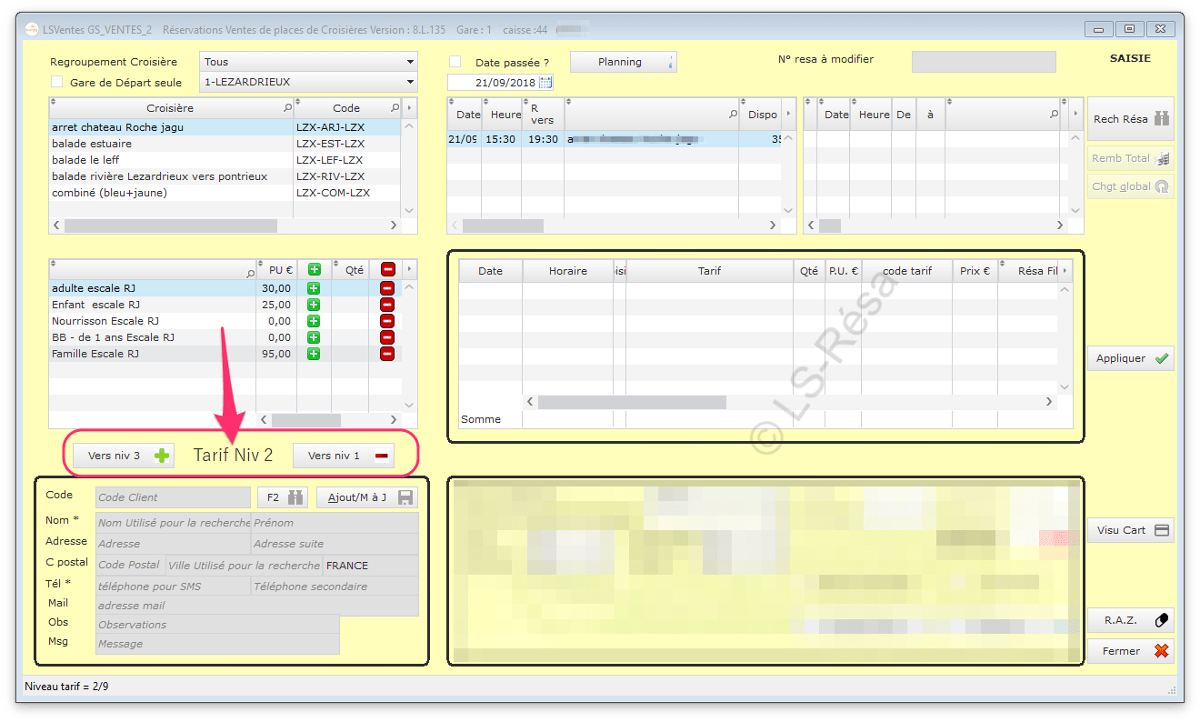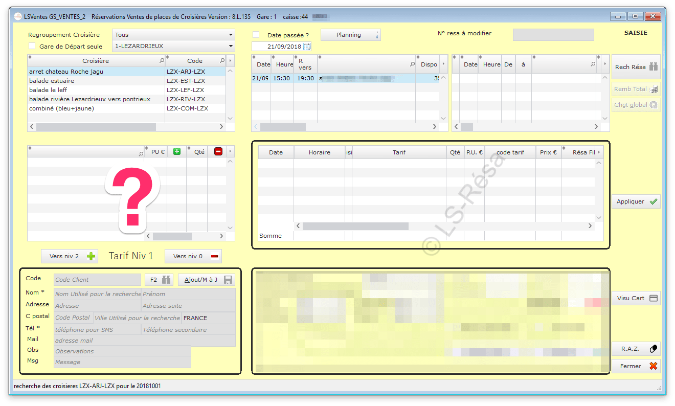 Avez-vous atteint le niveau suffisant dans LSVentes pour pouvoir vendre ces prestations ?Dans l’exemple ci-dessous, un utilisateur en niveau 1, ne trouve aucun tarifs correspondant à sa croisière :